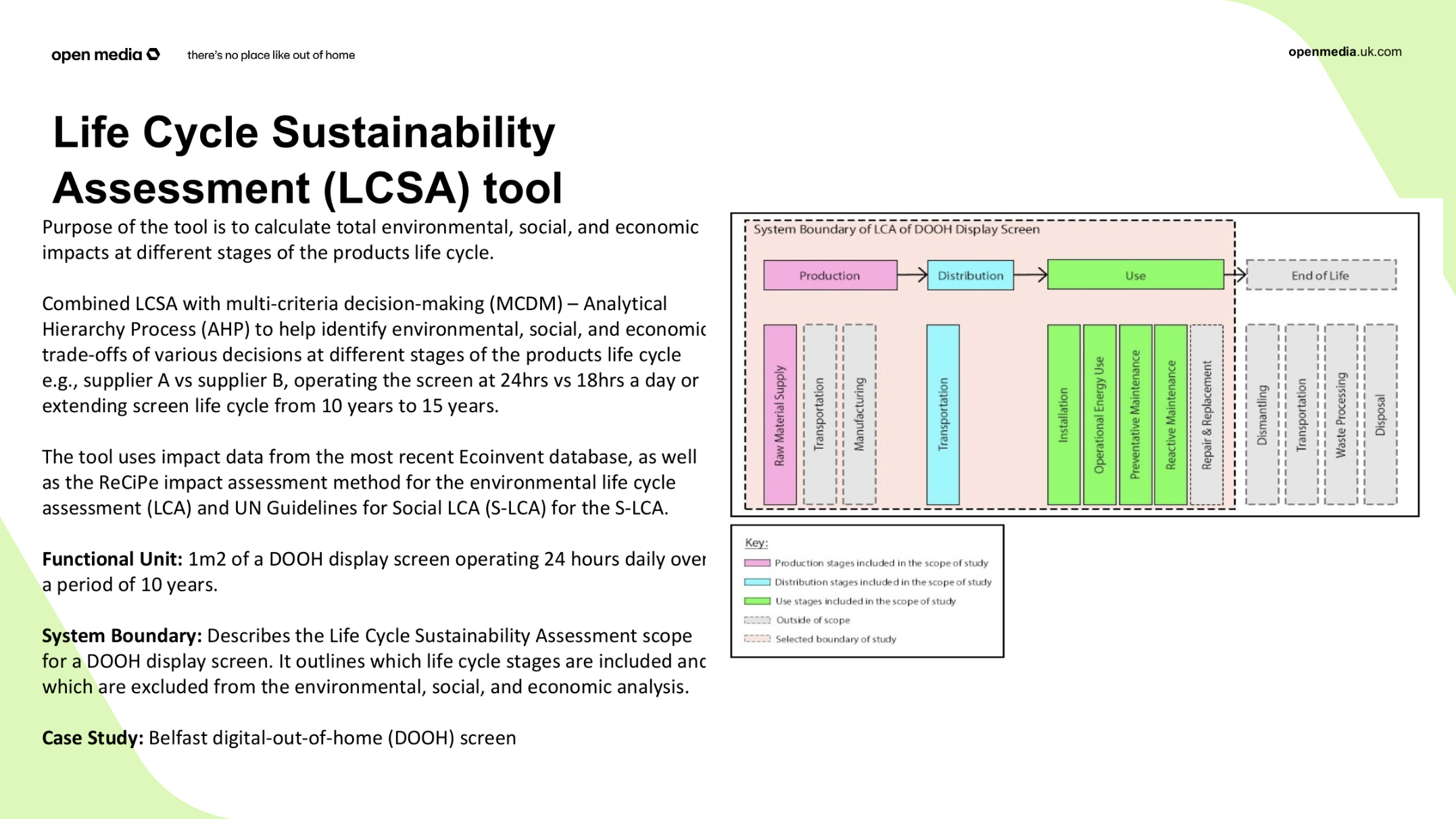 Life Cycle Sustainability Assessment Tool for Outdoor Advertising Screens.